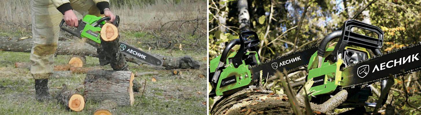Эта полупрофессиональная модель активно используется при уходе за крупными садами, а также для очистки столбов лесных деревьев перед их дальнейшей валкой. Бензопилу Лесник в этой комплектации часто используют сотрудники коммунальных и спасательных служб.