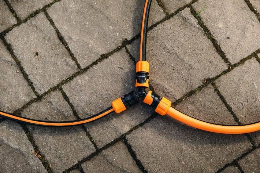 После выбора материала изготовления шланга стоит определиться с его диаметром и длиной. В зависимости от этих критериев рукав можно приобрести на отрез или в бухте. Наиболее распространенными являются изделия, длина которых достигает значений 15, 20, 25, 35 и 50 м. Данный параметр подбирается исходя из размера участка и способа прокладки шланга. Если предполагается полив разных грядок, следует сложить все длины. Для соединения элементов разных размеров необходимо будет приобрести быстросъемные соединения для шлангов. Они могут быть выполнены в виде тройника, елочки или крестовины.