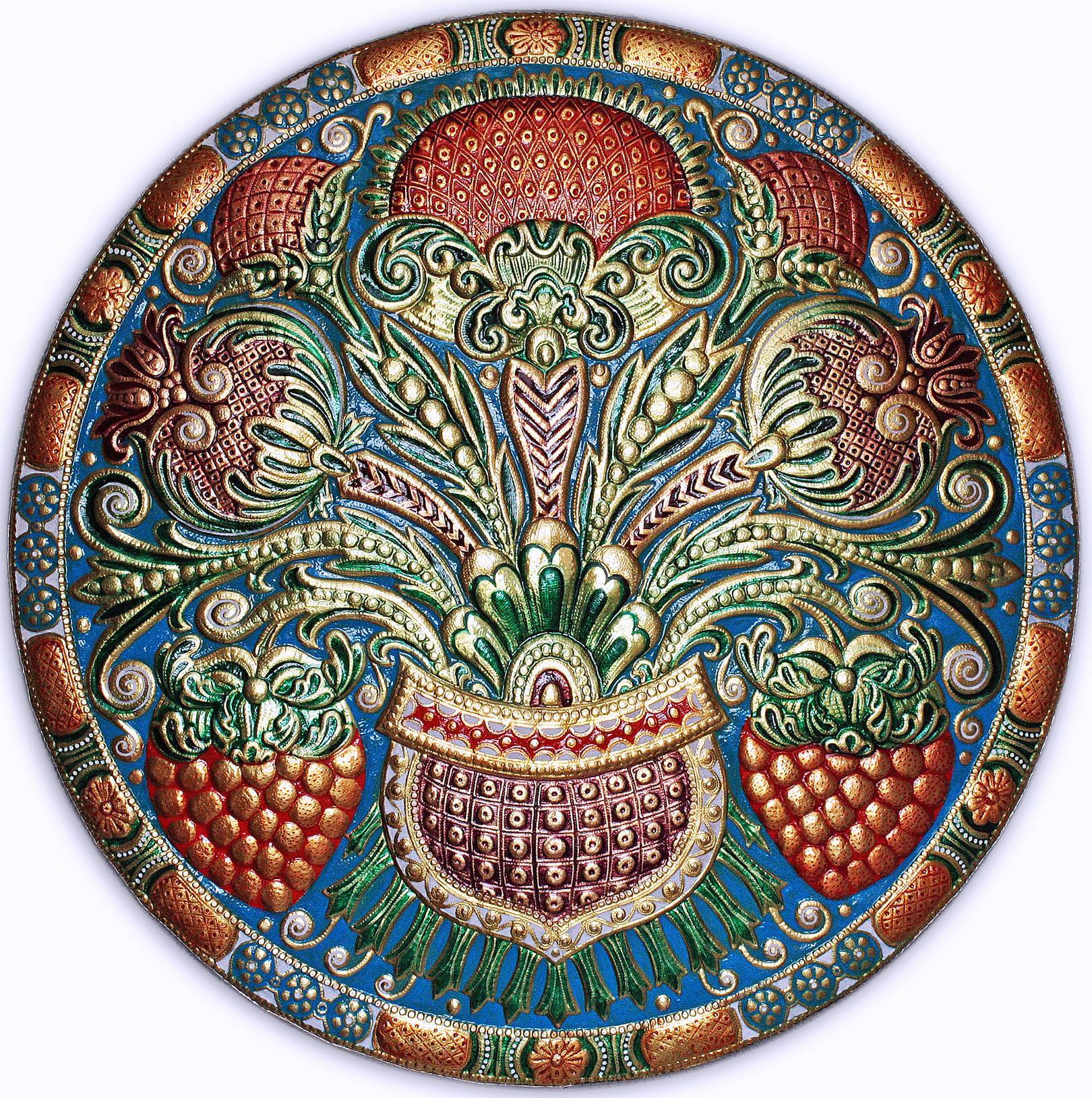 Ягоды и цветы (панно-рондо) 2008 г. Анодированный алюминий; холодная эмаль 70 х 70 см
