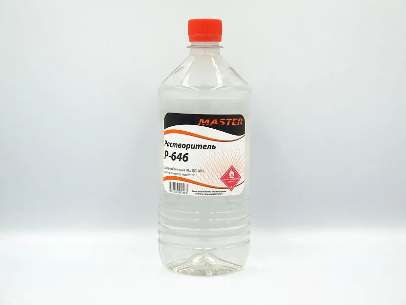 - Растворитель 646 – жидкость желтоватого оттенка с резким запахом. Применяют для обезжиривания любых поверхностей, удаления слоев краски, клининга строительного оборудования и инструмента. Также обезжириватель используют для разведения эмалей;
