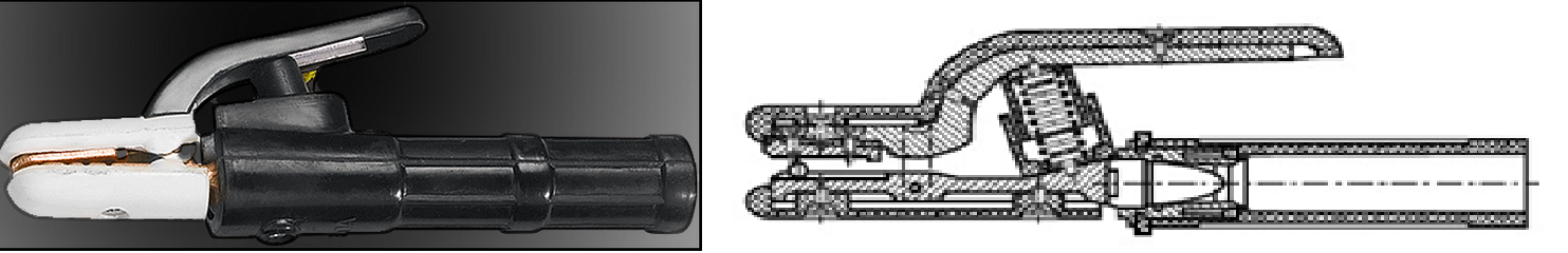 Крепление электродов в держателях этого типа производится пружинным или рычажным механизмом зажима. Эти модели выполнены с надежным жаропрочным диэлектрическим покрытием, гарантирующим безопасность сварщика и исключающим несанкционированное искрение. Контактные поверхности имеют зубчатую структуру, что позволяет быстро и надежно закрепить стержень так, как это необходимо для работы.