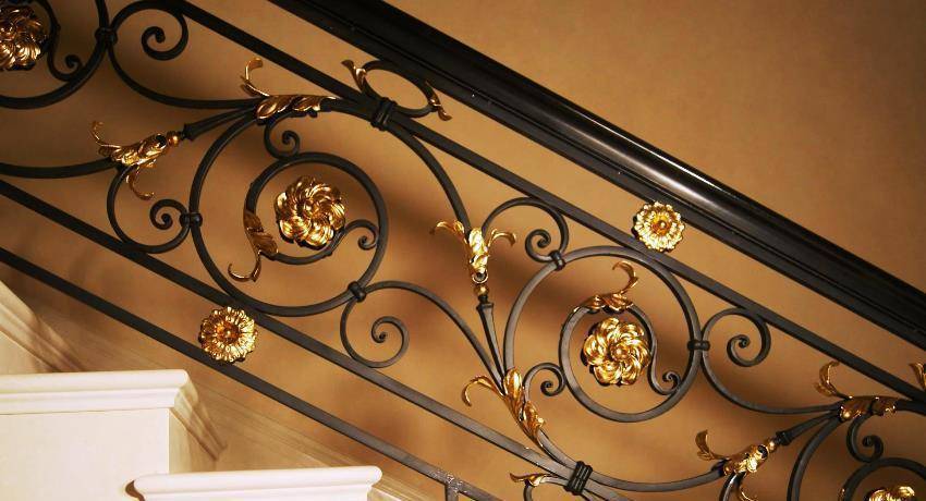 Элементы холодной ковки можно использовать для украшения лестницы
