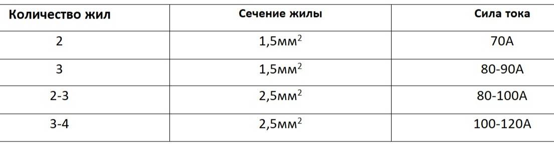 Вот примерные характеристики тока для разных типов проводов:
