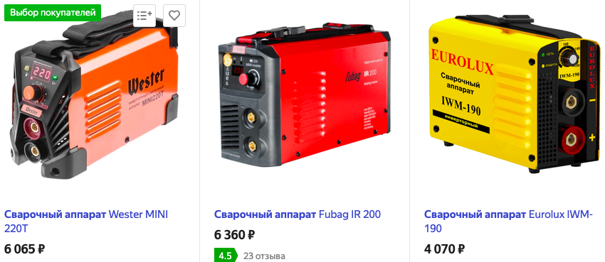 Примерная стоимость инверторов для сварки на Яндекс.маркет
