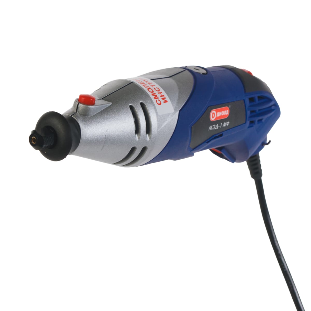 Замыкающую позицию нашего рейтинга занимает электрический гравер ДИОЛД МЭД-2 МФ (40 предметов). У него множество сфер применения: резка, гравирование, сверление, фрезерование и зачистка. Устройство имеет необычный дизайн прорезиненного корпуса, который увеличивает безопасность при работе.