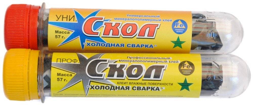 Некоторые виды могут схватываться даже под водой. Но они в первую очередь именно герметики, требования по высокой прочности на разрыв к ним не предъявляются, поэтому и ждать от них повышенной прочности при склейке двух стальных листов не стоит. Выпускается такая сварка часто в жидкой или полужидкой форме, чтобы удобнее было наносить на места соединения труб.
