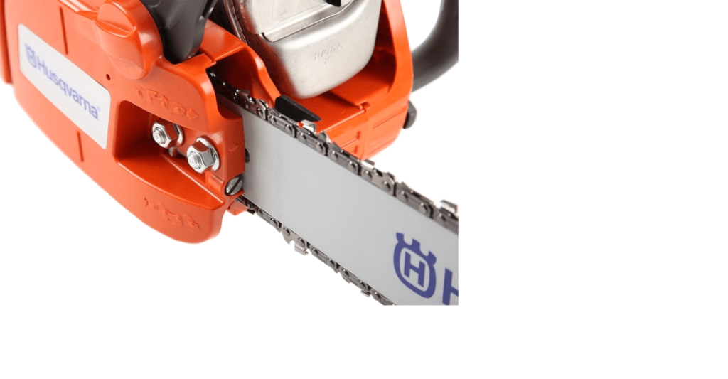 - Можно отрегулировать положение цепи пилы, механизм находится сбоку.