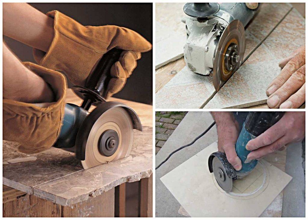 Для болгарки применяют специальные сменные диски (круги) — с алмазным напылением. Они отличаются почти полным отсутствием пористости на рабочей поверхности. Гладкая поверхность обеспечивает минимальное количество растрескиваний и сколов при резании. Некоторые продавцы считают, что плитка по своим свойствам подобна бетону, и предлагают круги для камня – это недопустимо.