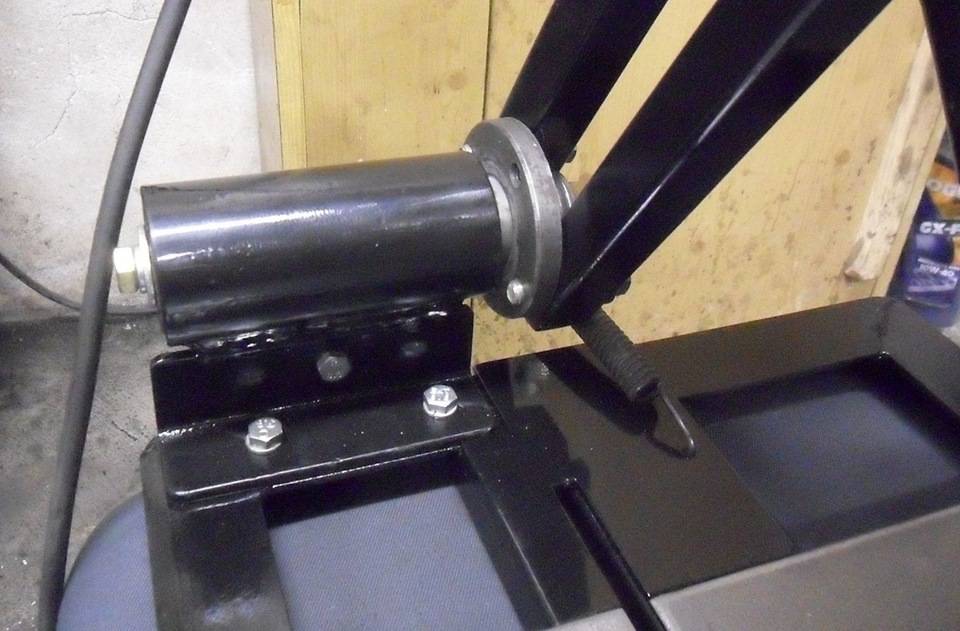 Платформа для станка изготавливается из листовой стали. Для маятникового рычага подойдет профильная труба, к которой строго перпендикулярно приваривается поперечный вал. На этот вал с обоих концов жестко запрессовываются два подшипниковых узла. После этого приваривается маятник.