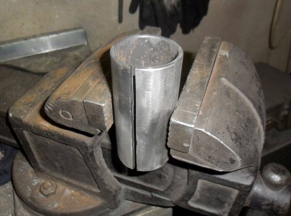 Она была немного великовата по диаметру, поэтому сделал продольный пропил, чтобы зажимать подшипники, как хомутом.