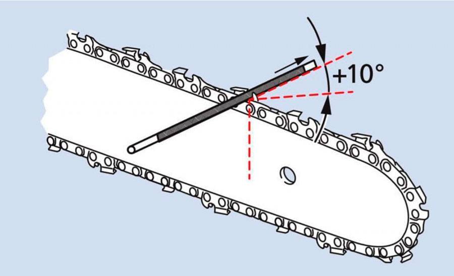 - градус проведения заточки зависит от меток, нанесённых производителем цепи;