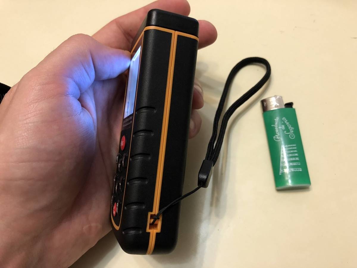 - Первоначально устройство включается. Работают устройства от автономных источников питания, которыми могут выступать обычные пальчиковые батарейки или литий-ионные аккумуляторы. Включается дальномер путем нажатия кнопки включения
