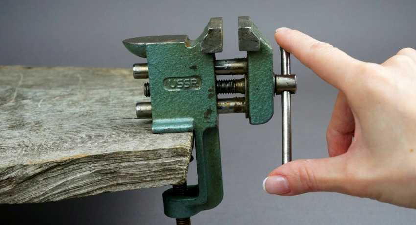 Если у мастера нет верстака, но при этом ему не нужно выполнять операции, требующие применения грубой физической силы, ему идеально подойдут настольные тиски. Они закрепляются при помощи различных струбцин.