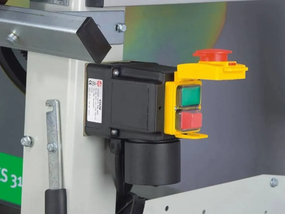 Оборудование снабжено компактным пультом управления. На пульте управлению имеются 2 кнопки включения и выключения привода, а также 2 сигнальные лампочки белого и зеленого цветов. Вся электроаппаратура расположена в нише станины.