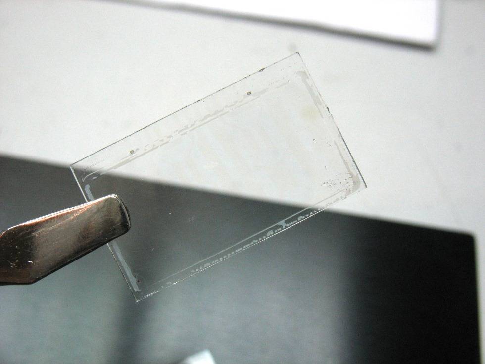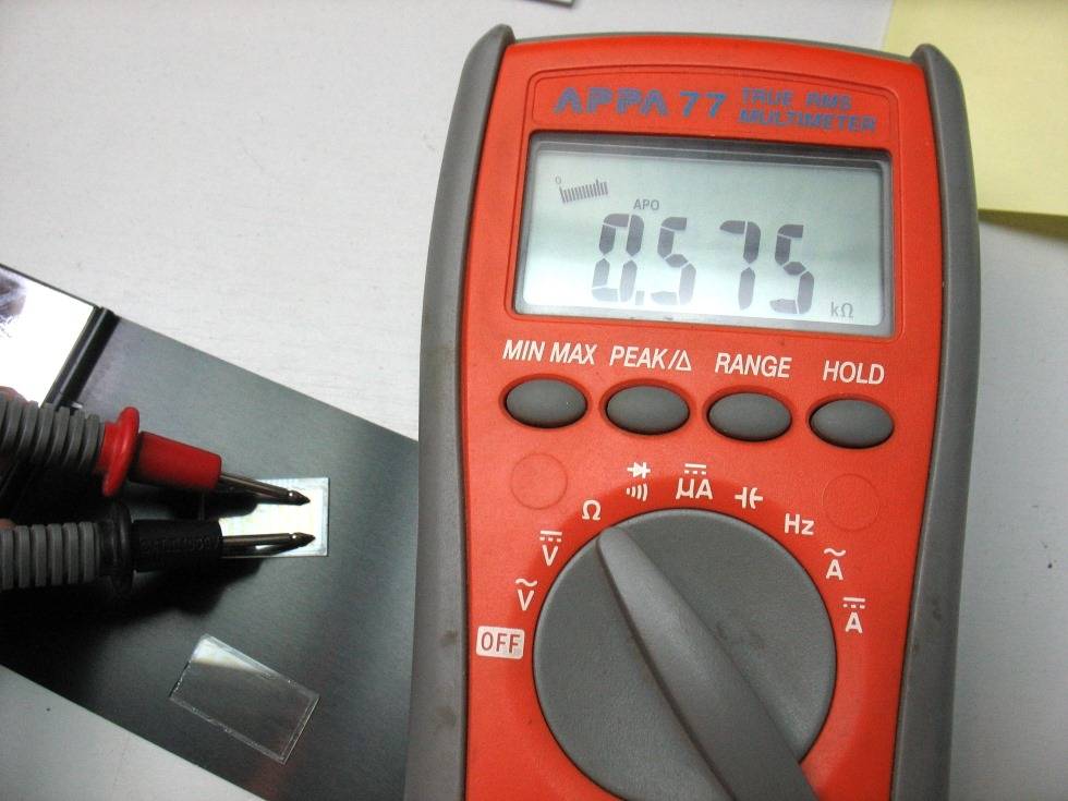 Пленка ITO едва видна в отражении, чтобы хоть как то она была заметна пришлось разобрать ЖК дисплей: