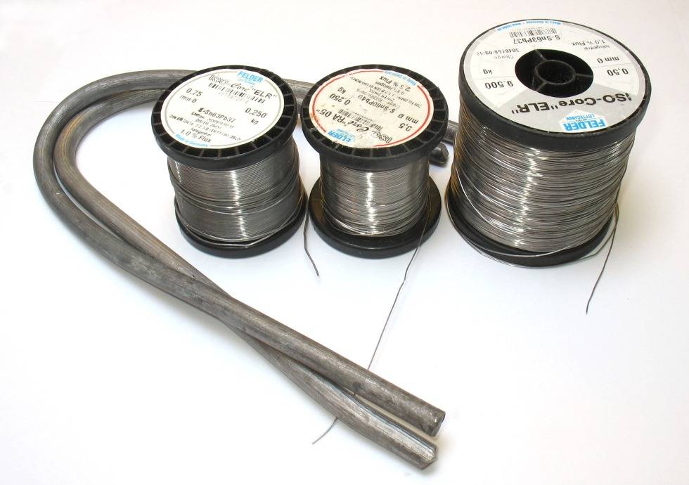 Катушки и прутки оловянно-свинцовых припоев. Проволока из припоя содержитцентральный канал с флюсом, облегчающим процесс пайки.