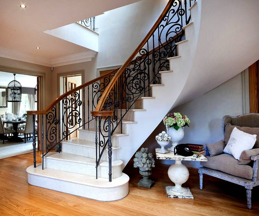 В некоторых местах лестницы с коваными ограждениями смотрятся особенно эффектно: