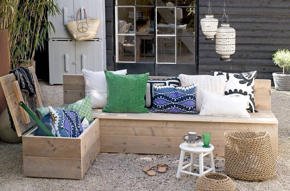 Дополните кованую скамью подушками и пледом — и вы получите великолепный уголок для отдыха