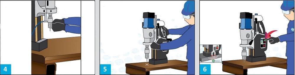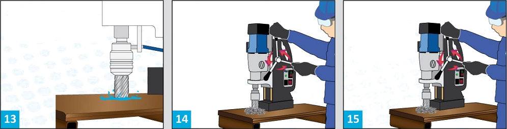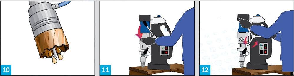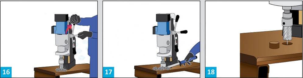 - Запустите двигатель магнитного станка и начните работу с медленной подачи. Благодаря этому вы не сломаете сверло о металл.