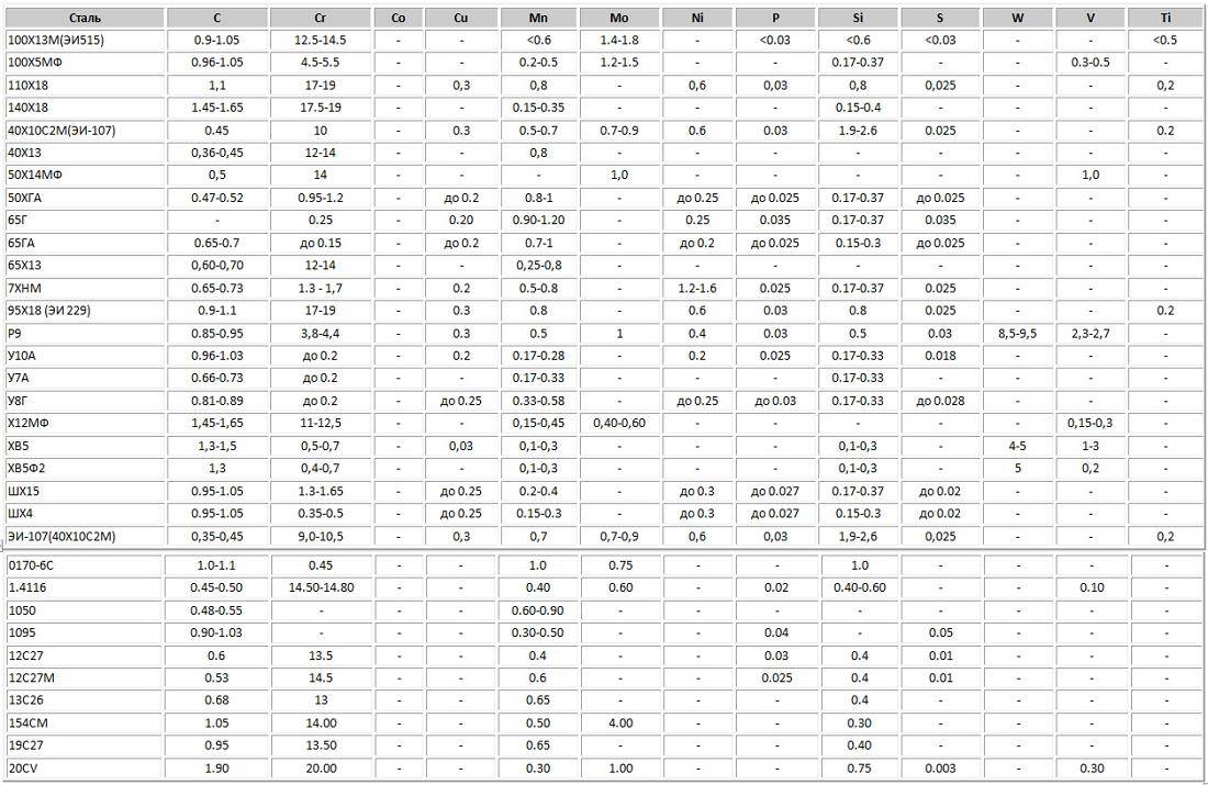 Для легированной стали установлена маркировка кириллицей основных элементов в её составе. Как можно заметить, они не всегда совпадают с русскоязычным названием элемента и это необходимо учесть, чтобы не допускать ошибок.
