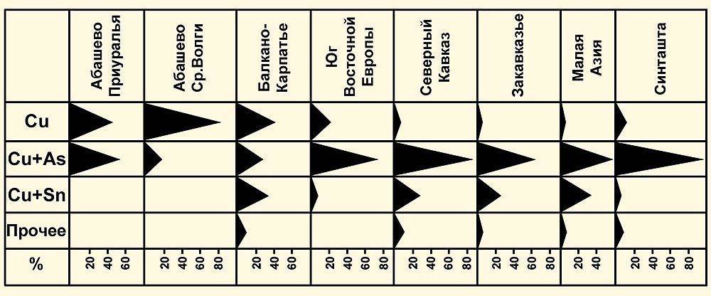 Сплавы меди в различных местах добычи