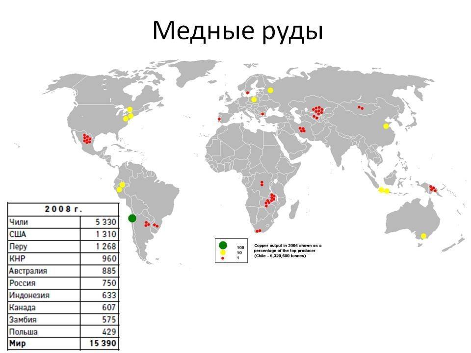 Расположение медных рудников в мире