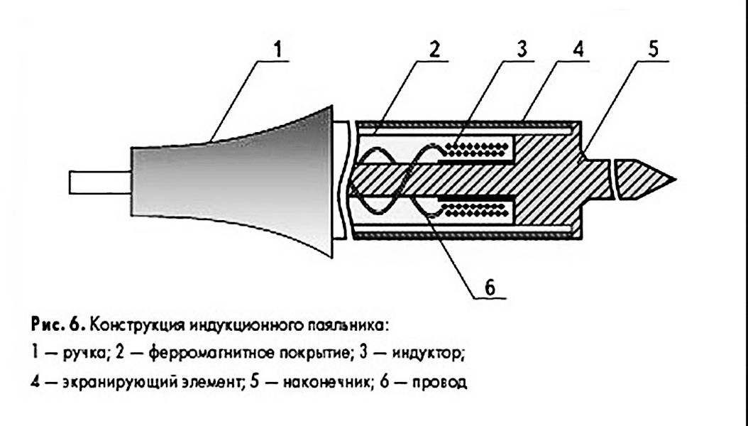 - индукционные (разогрев жала осуществляют с помощью токов высокой частоты).