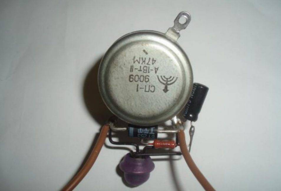 Все собирается на отечественной элементной базе. Диод с током до 1 А, и напряжением 400 вольт. Тиристор КУ101Г. Переменный резистор не обязательно мощный, серии СП-1.