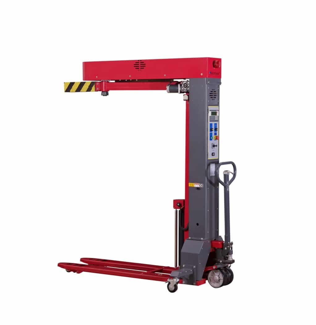 Оборудование востребовано для обустройства подсобных тесных помещений, его можно перенести загруженному к непосредственно поддону. Устройство лишено привычного стола опорного, обмотку выполняют сразу же на груз с механизма помощью, предусмотренного на мачте открытого типа Г-формы образной. Двухосный механизм, отвечающий за перемещение, общим активируется приводом агрегата.