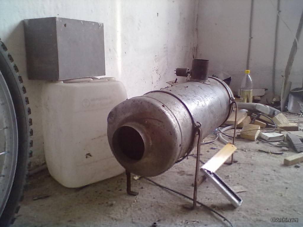 Простая конструкция печи на отработанном масле, изготовленной из газового баллона