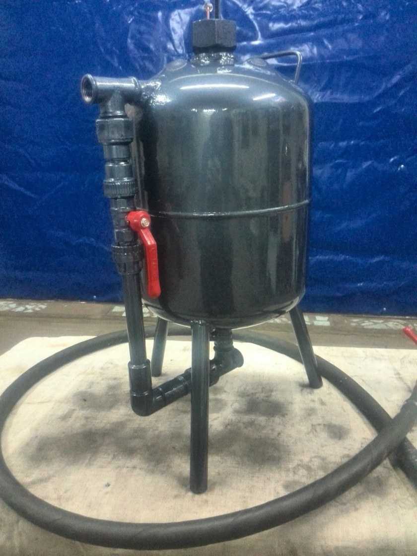 Шаровые краны в верхней и нижней части пескоструя позволяют регулировать давление воздуха и подаваемой смеси