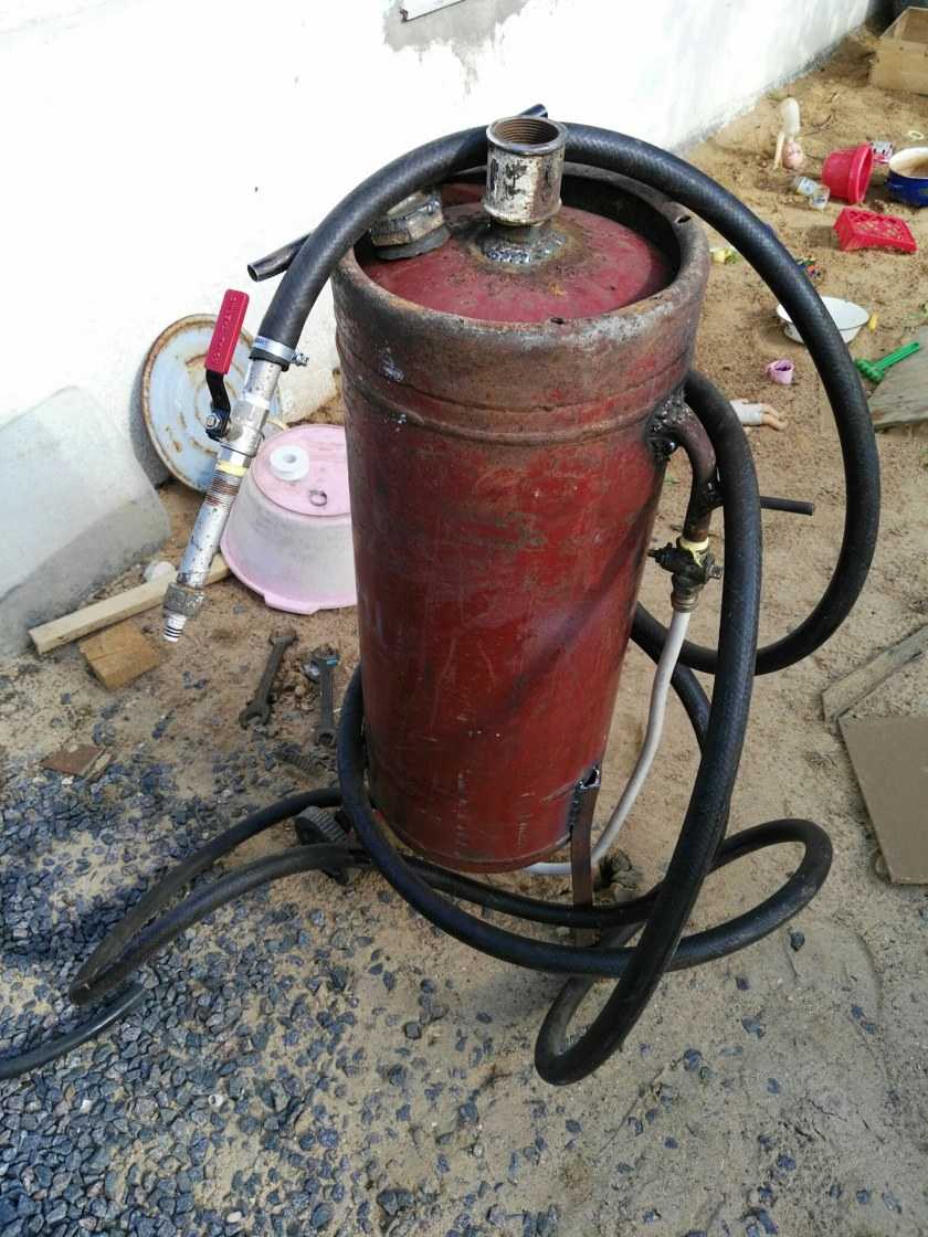 После выполнения основных работ по изготовлению пескоструя из фреонового баллона остается только закрепить на нем соединительные шланги и установить сопло: