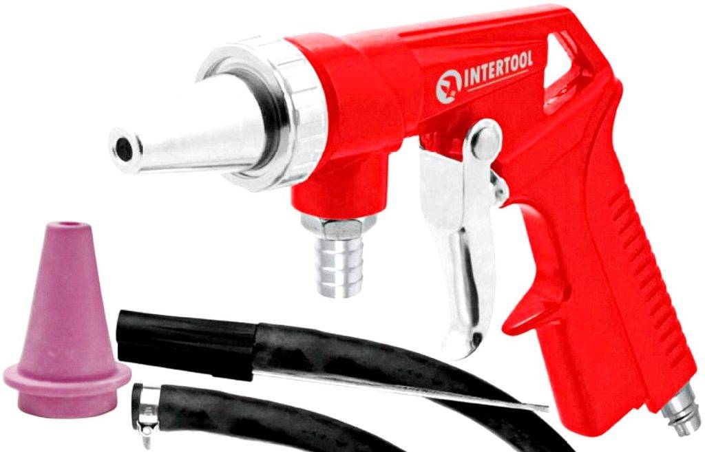 Другой вариант – пескоструй из продувочного пистолета, отличающийся высокой эффективностью, но при этом небольшими габаритами. Особенно прибор ценится автолюбителями, занимающимися кузовными работами. Для изготовления подготавливают следующие детали: