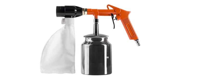 Затем необходимо подключить к аппарату компрессор, а также установить купленный или изготовленный своими руками пистолет для пескоструя. Полученный небольшой прибор считается идеальным вариантом для выполнения мелких работ.