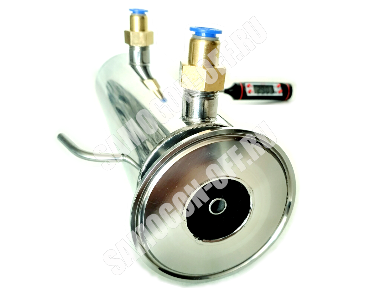 - Компактность. Высота 280мм, диаметр 76мм! Это безусловный плюс. Громоздкие конструкции с отдельными охладителем, дефлегматором, узлом отбора и дополнительными соединениями часто вызывают затруднения в сборке, хранении и транспортировке. Здесь же всё максимально просто и удобно: собрать и разобрать установку можно за считаные секунды, не задумываясь о том, что и куда подключать.