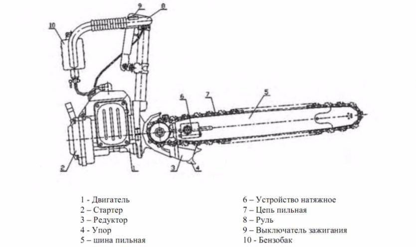 Стартер на бензиновых пилах представляет собой веревку с рукояткой, дернув за которую вы приводите в действие мотор. Когда вы дергаете за веревку, зубья цепляют храповик, маховик начинает раскручиваться.