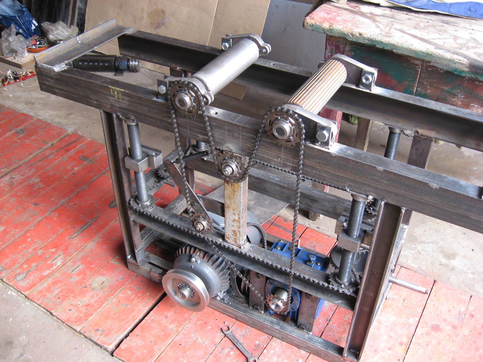 | Протяжка | Она представляет собой модификацию выжимных резиновых валиков от старой стиральной машины. Валики расточены под подшипники и посажены на оси толщиной 20 мм. Подача — ручная, осуществляется вращением рукоятки. |