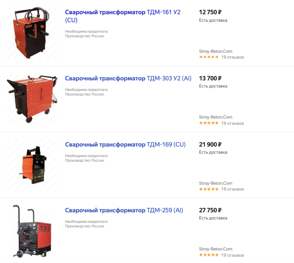 Примерная стоимость трансформаторов. Яндекс.Маркет