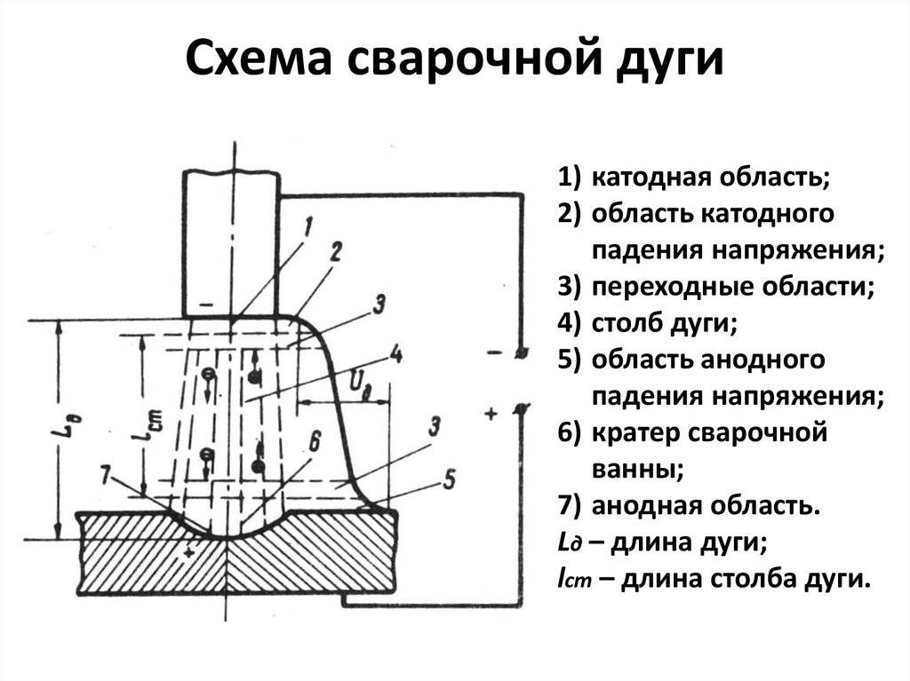 - Катодная – находится между столбом дуги и поверхностью катода.