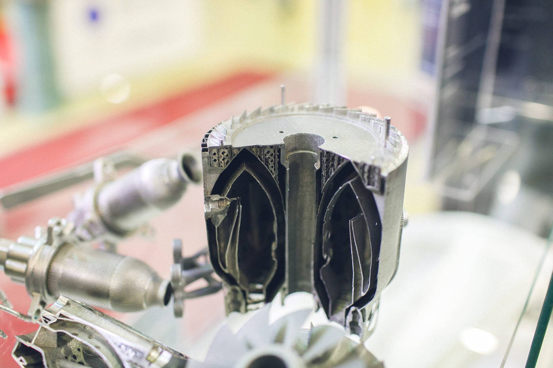 Турбореактивный двигатель (в разрезе), напечатанный на аддитивной установке 3DLAM