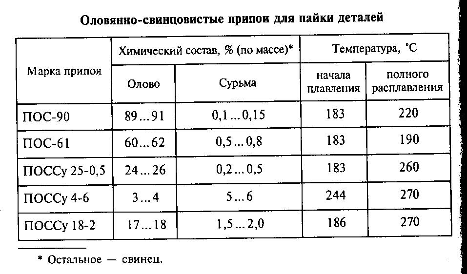 - Температура плавления ПОС — 183−265 °C .