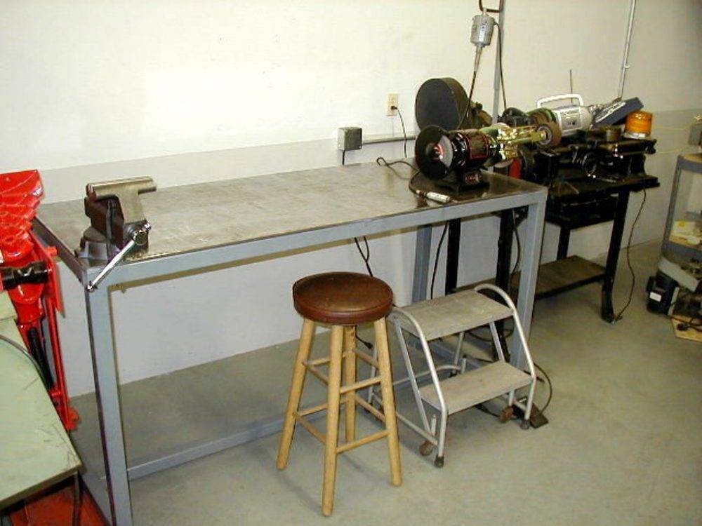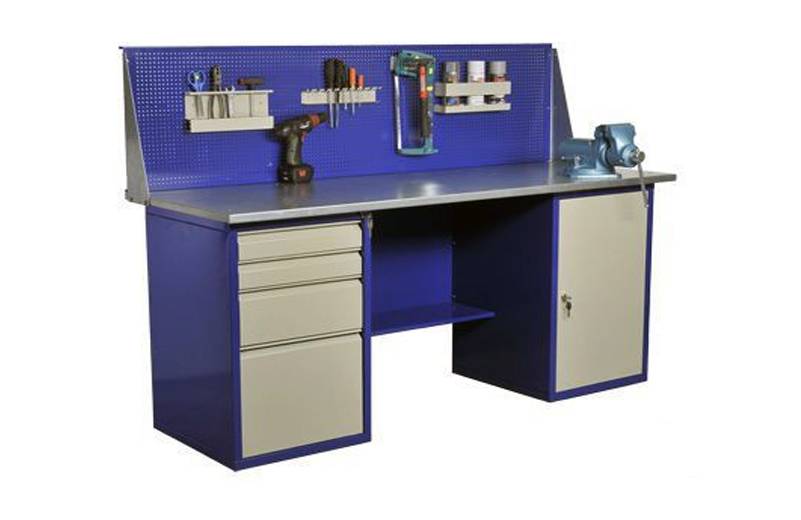 Также при обработке металлических деталей часто требуется усилие, использование острого инструмента, поэтому оптимальней всего оснащать верстак металлической столешницей.