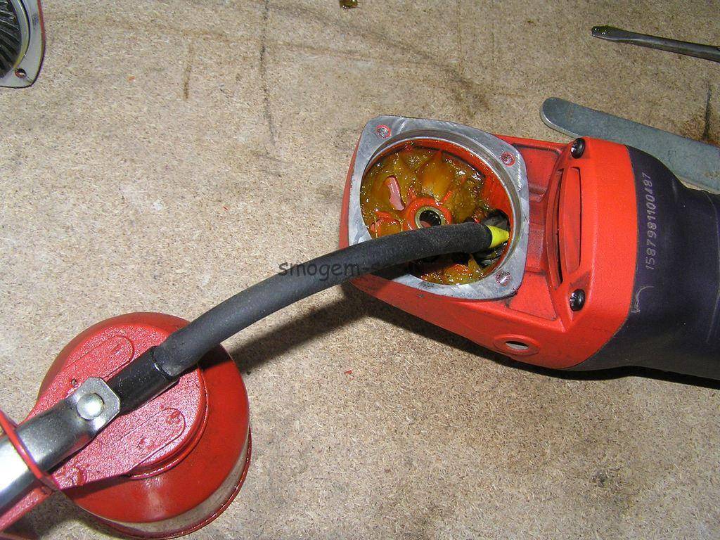 Контроль объема набитой в редуктор смазки осуществляется пробным включением собранной болгарки на непродолжительное время на холостом режиме.