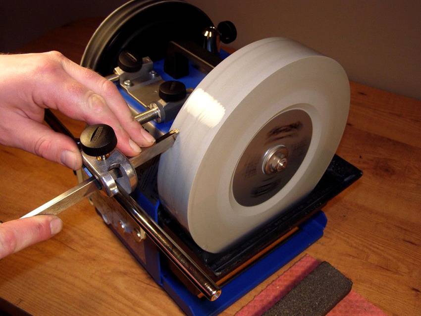 В домашних же условиях это может быть ручной вариант точила. Резцы подносятся к вращающемуся обтачному кругу, ход процесса оценивается визуально