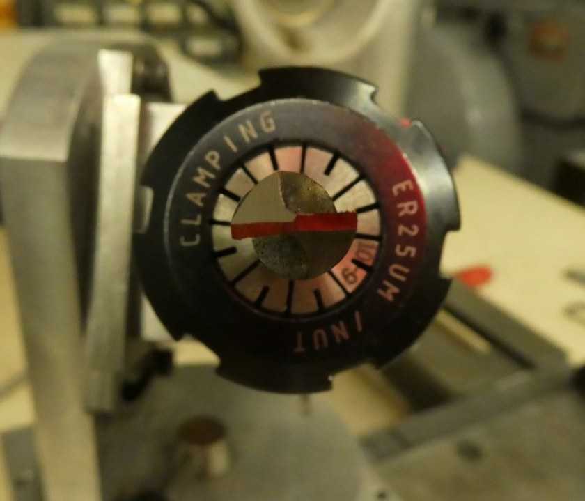 Инструмент фиксируется в зажиме под углом, под которым должны располагаться режущие кромки.