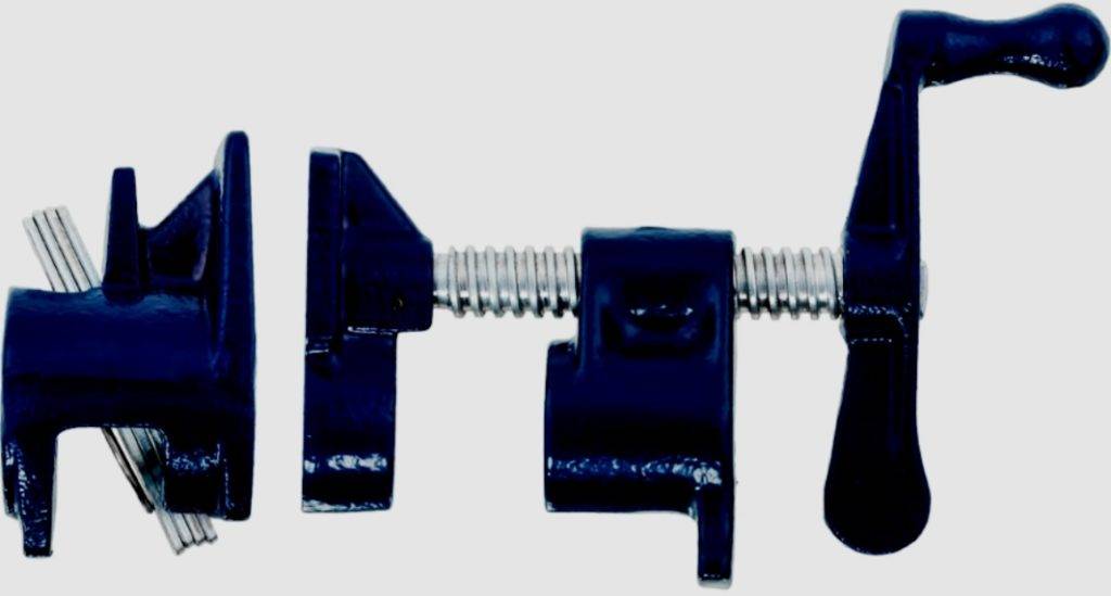 Эта установка состоит из двух независимых элементов. За счет подобных конструктивных особенностей изделие можно использовать для стягивания, крепления и склеивания различных заготовок. Отличное решение для склеивания деревянных изделий и щитов. Прекрасный выбор для сварщиков и столяров. Отмечается совместимость с трубами диаметром ¾. Заявленный производителем ход винта составляет 7 см. Показателя достаточно для осуществления прижима.