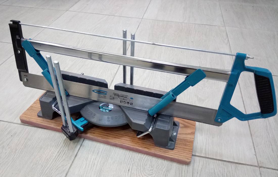 При установке напольных или потолочных плинтусов, наличников на двери, прокладки электропроводки в кабель каналах или изготовлении мебели возникает необходимость распиливать материал на отрезки заданной длины под прямым или углом 45 градусов. Можно конечно распиливать материал по нанесенной с помощью угольника линии. Но в этом случае работа требует внимательности и легко допустить непоправимую ошибку.