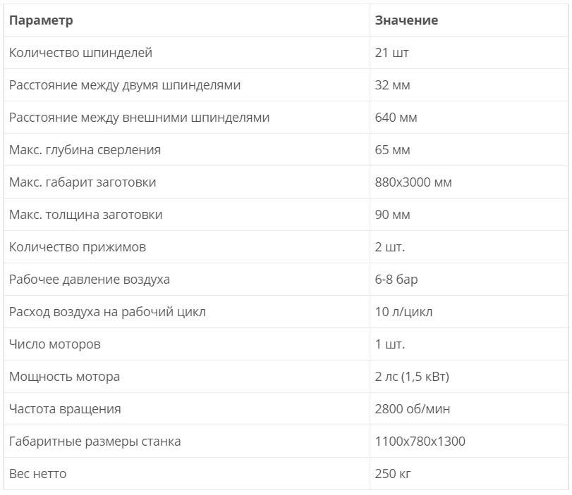 Данное оборудование может делать отверстия в соответствии с технологическими требованиями к производству мебели и фурнитуры. Оно оснащено столешницей 78, 5 на 37, 5 см. Максимальная глубина отверстий — 6,5 см. Двигатель весом в 275 кг имеет мощность 1,5 кВт. Ориентировочная стоимость — порядка 2500 у.е.