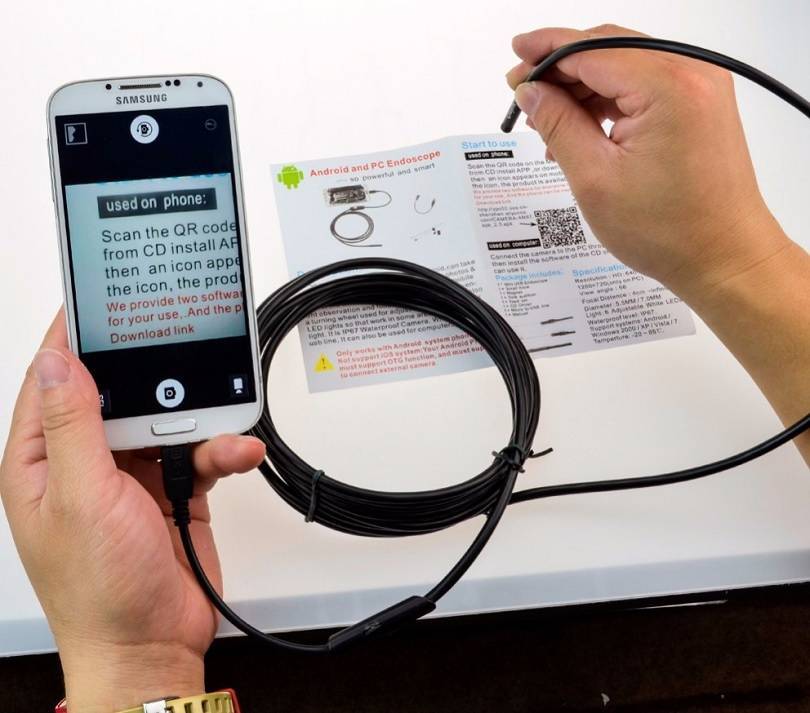 Поскольку современные телефоны по функциональности приближаются к полноценным компьютерам, камера эндоскопа может быть подключена к мобильному телефону, работающему под управлением Android. Единственное условие, которому должен отвечать телефон – это поддержка адаптера OTG.