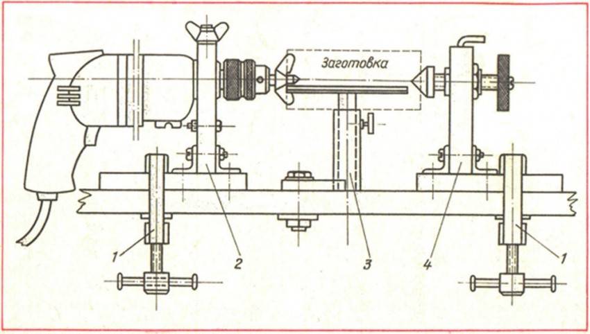 Возможно вы видели фото токарного станка из дрели – есть готовая платформа, к которой с одной стороны крепится дрель, а с другой зажимается деталь. Такую подставку можно купить в магазине, ведь использование дрели не является характерным только для народных рецептов.
